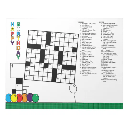 Birthday Crossword Puzzle 48 Clues Notepad Zazzle Com